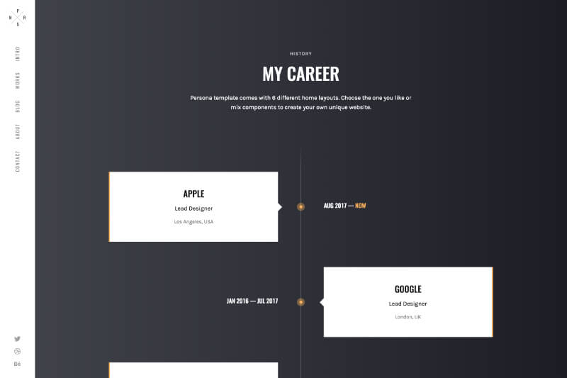 Persona template comes with 8 different home layouts. Choose the one you like or mix components to create your own unique website.